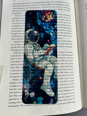 Astronaut Reading Bookmark – Cosmic Space Art for Book Lovers – Galaxy Starry Night Bookmark – Bookish Gift – Astronaut in Space Bookmark