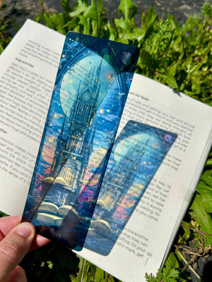 The Coolest Bookmarks You've Probably Ever Seen.... Enter a realm of magic with the Cathedral Celestial Castle Bookmark! Featuring gothic fairytale art and a mystical sky castle design, this fantasy page marker is a unique book lover accessory, perfect for those who dream of enchanted worlds and celestial wonders.