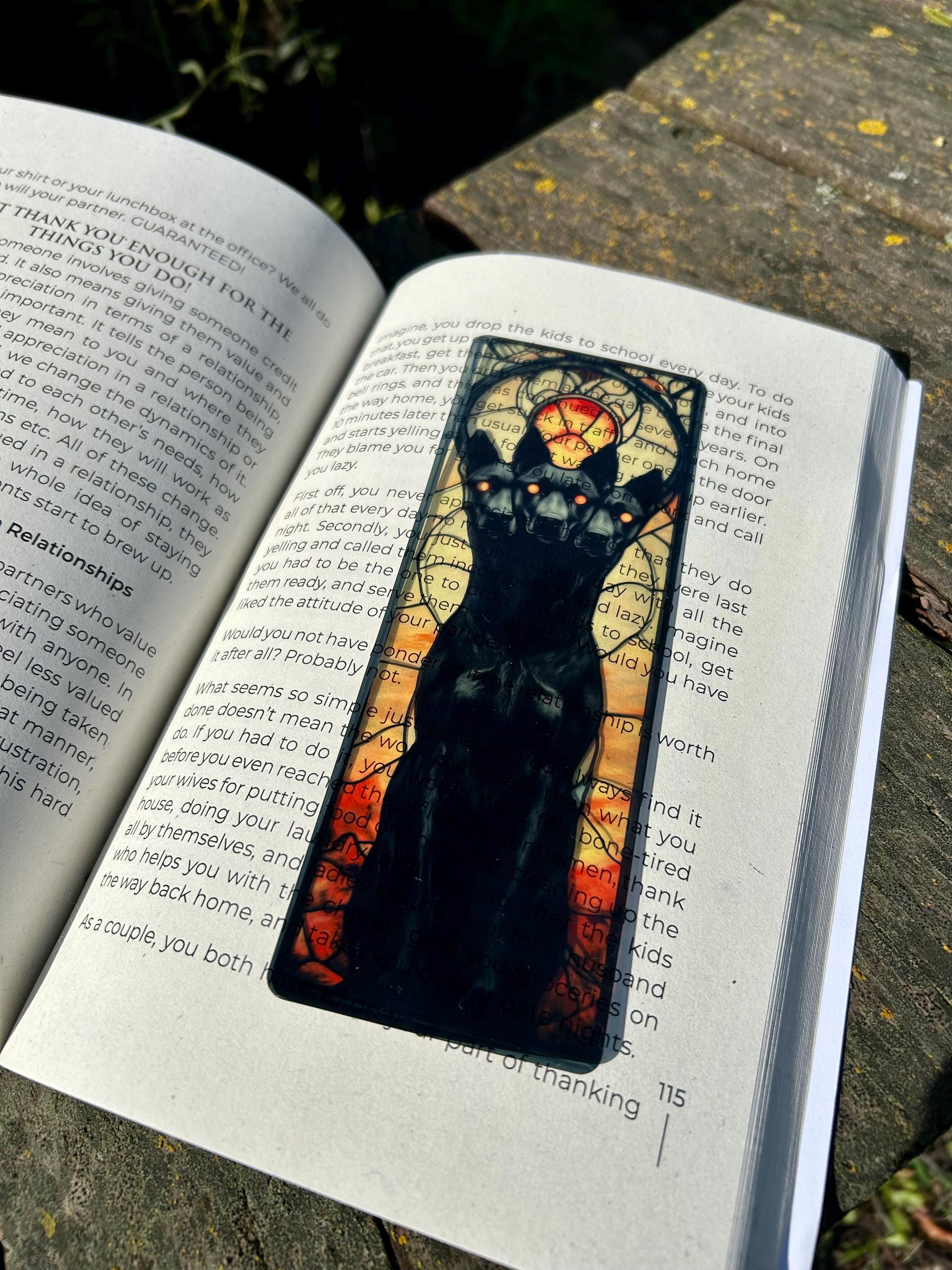 The Coolest Bookmarks You've Probably Ever Seen....Guard your pages with the legendary Cerberus bookmark! Featuring the mythical three-headed dog of the underworld, this unique piece is perfect for book lovers, mythology fans, and dark academia enthusiasts. A striking gift for those who love fantasy and Greek mythology. Hand Made In Bend Oregon