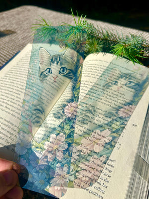 Cute Kitten in Pastel Garden Bookmark – Whimsical Cat and Flower Book Accessory for Readers