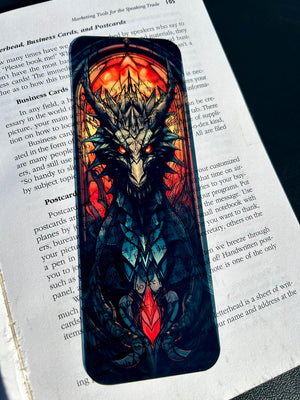 HELL Dragon Bookmark – Fiery Stained Glass Design for Fantasy Book Lovers, Dark Gothic Dragon Art Bookmark Gift for Readers