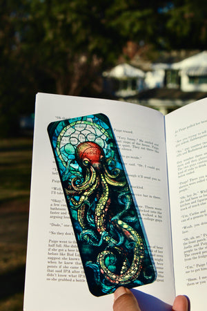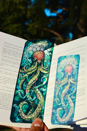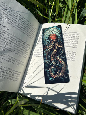 This handmade Kraken Octopus bookmark features a striking design of the legendary sea creature, perfect for fantasy lovers and ocean enthusiasts. A unique gift for fans of nautical themes and mythology, it adds an adventurous touch to any reading experience.