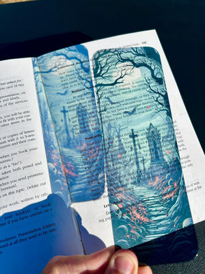 Step into the shadows with this chillingly beautiful moonlit graveyard bookmark 🌕🦇🖤
