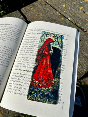 The Coolest Bookmarks You've Probably Ever Seen....Step into the world of fairy tales with this Red Riding Hood and Wolf bookmark, featuring enchanting dark fantasy art. Perfect for book lovers, folklore fans, and those who love gothic aesthetics. A unique and magical gift for readers who enjoy classic stories with a mysterious twist.