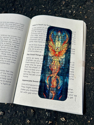 The Coolest Bookmarks You've Probably Ever Seen.... Rise from the ashes with this Stained Glass Phoenix Bookmark, a stunning tribute to rebirth, transformation, and resilience. Featuring a vibrant, fiery phoenix in a stained glass-inspired design, this bookmark is perfect for fantasy lovers, mythology enthusiasts, and anyone who finds inspiration in the legendary phoenix. A unique and meaningful gift for book lovers who embrace the magic of new beginnings!