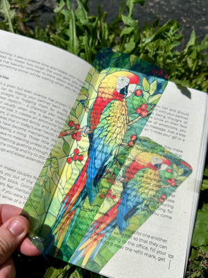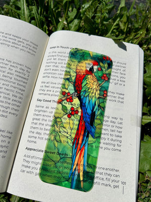 The Coolest Bookmarks You've Probably Ever Seen.... Bring the vibrant colors of the tropics to your reading with the Tropical Macaw Bookmark! Featuring a beautifully detailed design of an exotic macaw parrot, this bookmark is the perfect gift for bird lovers and wildlife enthusiasts. A unique and colorful accessory that adds a touch of jungle magic to every page.